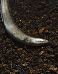 Eels reproduce in the Sargasso Sea in the Western Atlantic near the Bahamas. Females produce clear eggs that hatch into transparent larvae that float on oceanic currents to Europe. In shallow waters they become elvers which move en masse upwards into estuaries and river systems. Here they will spend many years before returning to the open sea for the long journey back to the Sargasso where it is assumed they die after reproduction.