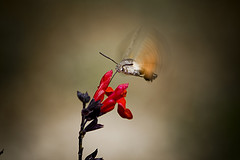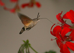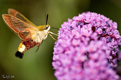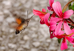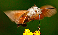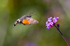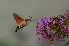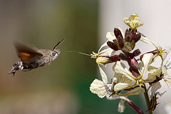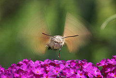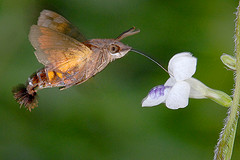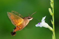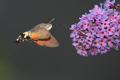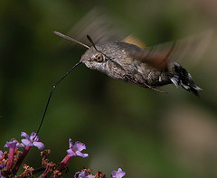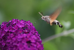 Humming-bird Hawk-moths are amazing animals, which hover like tiny hummingbirds to drink nectar from flowers. They migrate to Britain from North Africa and southern Europe in May and June. They are able to breed here during the summer months but traditionally have not been able to survive our winters. This is changing and the Humming-bird Hawk-moth is an excellent indicator of the effects of climate change on our native wildlife