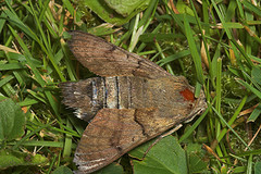 The caterpillars of the Humming-bird Hawk-moth feed on Lady’s Bedstraw, Hedge Bedstraw and Wild Madder. They are distinguished by a ‘horn’ on the end of the green body, which confirms it as a hawk-moth caterpillar, and yellow stripes down the side identify it as a Humming-bird Hawk-moth. The caterpillars will pupate in a cocoon low in the vegetation or in leaf litter, and the adults emerge late in the autumn.