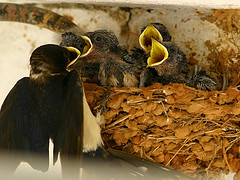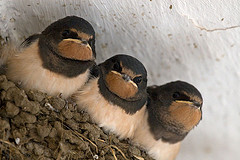 Swallows are most likely to be seen where there are plenty of small insects on which they feed. They are particularly fond of open country with access to water and quiet farm buildings where they can nest. They nest mainly on ledges in barns, outhouses, old buildings, or under bridges, so usually near human habitation. Large reedbeds in late summer and early autumn can be good places to look for pre-migration roosts.