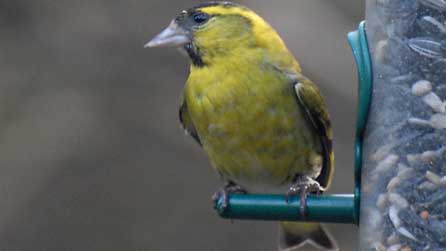 Hadau coed yn enwedig Gwern (Alder), y Fedwen a'r Conwydd yw ei brif fwyd, ond fe all fwyta hadau perlysiau hefyd, a rhai mathau o bryfetach. Yn yr ardd, mae'n bwydo ar gewyll hadau, a hadau niger yn enwedig.. Maent i'w gweld yn ein gerddi ni, fwyaf o ddiwedd Chwefror tan tua chanol Ebrill pan y bydd yna lai o fwyd i'w gael yn y coedwigoedd