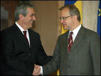 La o conferinţă la European Policy Centre (un centru de studii europene de la Bruxelles), îl intreb pe comisarul pentru extindere, Olli Rehn, dacă va avea într-adevar curajul să ceara amânarea uneia dintre cele două ţări. E practic imposibil să obţină un vot unanim al celor 25 de guverne, iar majoritatea calificată se aplică pentru Romania doar în 11 puncte privind concurenţa şi justiţia şi afacerile interne, care par deja rezolvate. "Nu e doar un bluf?" îl intreb. La rândul sau mă întreabă, cu un aer nedumerit, "ce bluf?" Dl Rehn pare sincer dispus să apese pe ceea ce oficialii de la Bruxelles numesc "butonul nuclear" dacă e nevoie. A făcut un gest similar la preluarea mandatului de comisar pentru extindere, când a acceptat încheierea negocierilor cu România, doar după ce a obţinut condiţii mai stricte, adică cele 11 puncte de mai sus. Acum însă, definiţiile sunt mult mai vagi. România şi Bulgaria ar trebui să fie "evident nepregătite într-o serie de domenii". Comisarul îmi spune că pentru el, aceasta însemna funcţionarea statului de drept, reforma justiţiei şi rezultate tangibile în lupta împtoriva corupţiei şi crimei organizate. Jose Manuel Barroso, Preşedintele Comisiei Europene, a declarat însă la Strasbourg ca "până la urma e o evaluare, o chestiune de judecată, nu de obiective cantitative. "La sfârşitul anului, va fi deci o decizie politică, dar asta nu înseamnă că România şi Bulgaria pot sta cu braţele încrucişate". Trenul extinderii