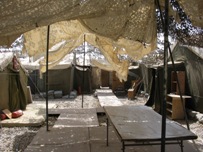 Italienii au, pe lângă cantină... câteva baruri, unde pot să bea o bere sau să mănânce o pizza. Au şi câteva magazine. Românii n-au nimic care să le amintească de casă. Poate doar poza cu familia, în buzunarul de la piept. Nu ştiu...mă gândeam că ar fi frumos dacă ar exista posibilitatea ca măcar o dată pe săptămână, undeva, într-o baracă, să li se facă o ciorbă, ca acasă, sau un grătar cu mici. Surpriză, însă! Dintr-o baracă aud cântând manele în limba română. Într-un aşa zis PX italian. Adică un magazin cu preţuri de free shop, unde găseşti de toate. Mă întâmpină un indian. Într-o română curată mă întreabă ce mai fac, dacă sunt bine sănătoasă şi câte ceva despre familia mea. E ultima zi în tabără de la Talil, din Irak. La noapte, plecăm spre ţară. | LEGĂTURI Reporter în Irak- prima zi02 August, 2006 | Ştiri Reporter în Irak- a doua zi02 August, 2006 | Ştiri Reporter în Irak- a treia zi02 August, 2006 | Ştiri Ultima filă a jurnalului călătoriei din Irak01 August, 2006 | Ştiri | |||||||||||||||||||||||||||||||||||||||||||