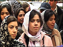 În Iran tendinţa unor femei de a "ajusta" lungimea vălului islamic obligatoriu prin lege stârneşte o dezbatere înfierbântată. Femei pe tocuri înalte şi cu mult machiaj defilează pe podiumul de modă, înconjurate de fum artificial. Este pentru prima dată în Iranul post-revoluţionar când are loc un asemenea eveniment. Dar femeile sunt îmbrăcate din cap până-n picioare în veşminte care acoperă totul, cu excepţia feţei. Multe dintre tinerele care au venit să vadă prezentarea de modă au fost dezamăgite. De pildă Faranak şi prietena ei. "Nu cred că oamenilor de rând le va plăcea acest spectacol fiindcă totul vine din cultura arabă. Până şi muzica era arabă şi hainele nu aveau deloc o tentă locală sau etnică", spune Faranak.