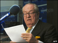 Jean Marie Le Pen, 78 de ani, candidează pentru a cincea oară din Frontului Naţional, partid etichetat drept de "extremă dreapta". În 2002 a provocat un şoc, calificându-se în turul de balotaj cu Jacques Chirac, în dauna candidatului, premierul de la acea dată, Lionel Jospin, cu apropae 17% din voturi. Imigraţia zero şi integrarea rămân principalele teme de campanie, după cum rezultă şi din motto-ul de campanie: "Franţa: iubeşte-o sau părăseşte-o". Deşi şi-a mai atenuat asperităţile din discurs, Jean Marie Le Pen rămâne un candidat agresiv, după cum a dovedit-o şi aluzia la originile "străine" ale lui Nicolas Sarkozy. Rămâne un adversar implacabil al integrării europene şi aderării Turciei la UE, având în program revenirea la francul francez ca monedă naţională, în locul euro. Creditat în sondaje cu 13 până la 16%, dar de obicei sondajele subevaluează scorul său real. Olivier Besancenot