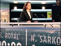 Segolene Royal a spus că această săptămână de lucru a însemnat un progres social, dar că nu va impune o generalizare a ei la întreprinderile mici şi mijlocii. În ceea ce priveşte Uniunea Europeană, Segolene Royal a spus că va propune o egalizare socială în sus, spre ţările cele mai bogate. Nicolas Sarkozy a spus că Franţa nu va mai reveni asupra Constituţiei Europene, care a fost respinsă prin referendum, că se va opune accesiunii Turciei la UE şi că extinderea fără limite a Uniunii înseamnă moartea Europei politice. Către sfârşitul dezbaterii, a avut loc un schimb mai tăios de replici, pe tema şcolarizării copiilor handicapaţi, Segolene Royal acuzându-l pe Nicolas Sarkozy de lipsă de moralitate politică, iar acesta a replicat că modul ei de a discuta este inacceptabil şi că nu ar trebui să-şi piardă cumpătul. | LEGĂTURI Posibile schimbări post-electorale în politica externă01 Mai, 2007 | Ştiri Sarko contra Sego: ce spun sondajele?01 Mai, 2007 | Ştiri Le Pen nu acordă sprjin nimănui în turul doi01 Mai, 2007 | Ştiri LEGĂTURI LA SITE-URI EXTERNE BBC nu este răspunzător de conţinutul paginilor de Internet ce nu îi aparţin | |||||||||||||||||||||||||||||||||||||||||||