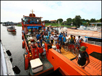 Mai există o parte a acestui text, dar o s-o citiţi zilele următoare. Chiar înainte de-a transmite, aproape de miezul nopţii, a trebuit sa modific câte ceva. Vaporul a lovit un banc de nisip. Toată lumea se află pe punte. Nu am cum să ştiu dacă lovitura a fost puternică, dar am simţit cum vasul se ridică brusc. Apoi ne-am oprit. Colegii mei spun că am fost norocoşi. Sau că avem un căpitan foarte priceput. Am lovit bancul perpendicular, astfel încât vaporul nu s-a înclinat în nicio parte. A fost coborâtă barca mică, pentru ca echipajul să poată verifica adâncimea apei. În orice caz, eram destul de aproape de mal. Ca să ne scoată din zonă, căpitanul a încercat - fără succes - să dea înapoi, cu motoarele amabalate la maximum. S-au cerut informaţii de la controlorii de navigaţie, dar din cauză că nu am putut preciza poziţia exactă nu ne-au putut ajuta. Ni s-a cerut însă să ne oprim chiar dacă reuşim să scoatem vasul de pe banc. Probabil pentru a verifica dacă sunt probleme. După o jumătate de oră, vaporul a fost scos de pe banc cu ajutorul bărcii de salvare, care l-a împins dintr-o parte. Încet-încet am ieşit din zona cu probleme. Recunosc, mi se cam înmuiaseră genunchii. Ni s-a explicat că am navigat aproape de mal din motive de siguranţă. Amazonul e foarte larg şi marinarii se tem să meargă pe mijlocul fluviului, ca să nu se rătăcească, neavând puncte de reper. Se merge mai aproape de mal, pe câteva trasee bine ştiute. Numai că fluviul îşi modificase cursul, aşa cum se mai întâmplă aici. Unde mai pui că apa era mai scăzută - un mic reflux. În cele din urmă am ieşit în larg şi acum căutam un adăpost, pentru că nu vom continua călătoria în noaptea asta. Vă ţin la curent. P.S.: Am continuat colaborarea cu Ping, de la serviciul chinez. Merită să vedeţi fotografiile lui. La finalul călătoriei vă promit o galerie consistentă, cu toate cele care s-au făcut aici. Dacă sunteţi curioşi, din pagina noastră puteţi ajunge la celalte servicii BBC în limbi străine, ca să vedeţi cum relatează ele despre expediţie. | LEGĂTURI LA SITE-URI EXTERNE BBC nu este răspunzător de conţinutul paginilor de Internet ce nu îi aparţin | |||||||||||||||||||||||||||||||||||||||||||