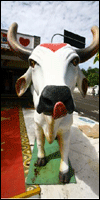 Aş fi vrut să spun tauri, dar asta e situaţia. Nu e vorba de tauri ci de doi boi: Garantido si Caprichoso. Garantido inseamna ceva de genul "cu siguranţă valoros", iar Caprichoso nu are nevoie de traducere. Ei au devenit simbolul oraşului şi reprezintă două tabere uriaşe, care se înscriu într-o luptă de trei zile, pe care o pregătesc un an întreg. Concursul constă în realizarea unei parade, ca la Rio. Câştigă cine face cele mai frumoase care alegorice, cine are cele mai frumoase si mai bune dansatoare, cine e mai spectaculos. Se dau note pe diverse categorii şi apoi o notă generală. Pentru asta sunt aduşi juraţi din întreaga Brazilie. Tot ca la Rio, şi aici e ca la fotbal: oraşul se împarte în două. Unii sunt caprichoso, de culoare albastră, iar ceilalţi - garantido, roşii. De altfel, şi teritoriul e marcat de steaguri. Chiar lângă port se află şcoala Caprichoso, cu un uriaş steag albastru, iar în partea cealaltă de oraş Garantido are un steag roşu. Ambele sunt ridicate pe stâlpi de aproximativ 20 de metri înălţime. Rivalitatea e atât de mare încât, vrând să vizităm şcoala Garantido, colegii mei cu tricouri albastre au fost sfătuiţi sa le scoată. Din păcate, şcoala s-a închis până să fi ajuns noi.