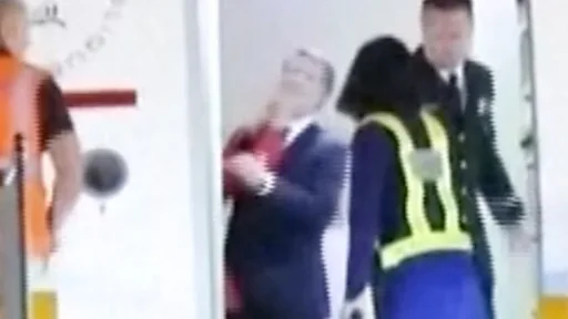 В начале видео Эммануэль Макрон стоит на виду камер, в проходе к трапу, лицом к Брижит, которую не видно. Происходит, по всей видимости, обмен какими-то репликами, после которого Брижит толкает мужа в лицо — но не сильно и не резко, то есть, не дает пощечину, а сравнительно медленно.