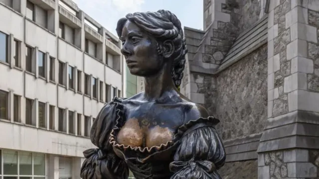 Установленная в центре Дублина фигура Молли Малоун стала одной из городских достопримечательностей. Однако многие предпочитают не только смотреть на статую, но трогать ее за область декольте, в результате чего соответствующие места стали блестеть.