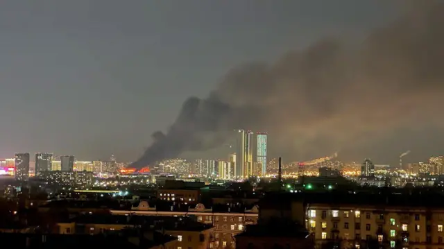 Большая часть здания концертного зала оказалась охвачена огнем, сообщают российские агентства.