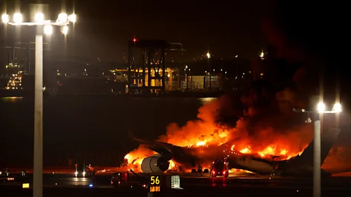 Предполагается, что самолет береговой охраны, который должен был доставить продовольствие в районы, пострадавшие от мощного землетрясения в районе полуострова Ното префектуры Исикава, столкнулся с пассажирским лайнером Japan Airlines, когда тот приземлился на взлетно-посадочную полосу незадолго до18:00 по местному времени во вторник (полдень по Москве) .