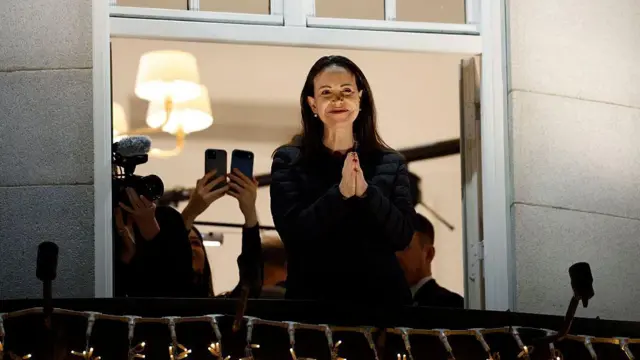 Мачадо помахала с балкона отеля Grand Hotel в Осло после нескольких месяцев, проведенных в подполье: последний раз она появлялась на публике в январе.