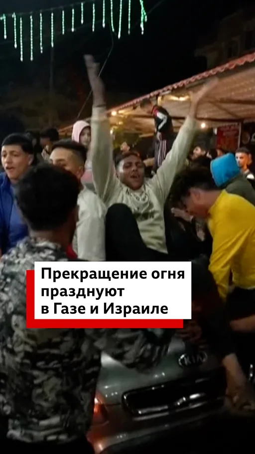 Журналисты, которые сотрудничают с Би-би-си, передали нам кадры танцующих и скандирующих палестинцев в городе Хан-Юнис в секторе Газа. Люди вышли на улицы после того, как перемирие было согласовано.