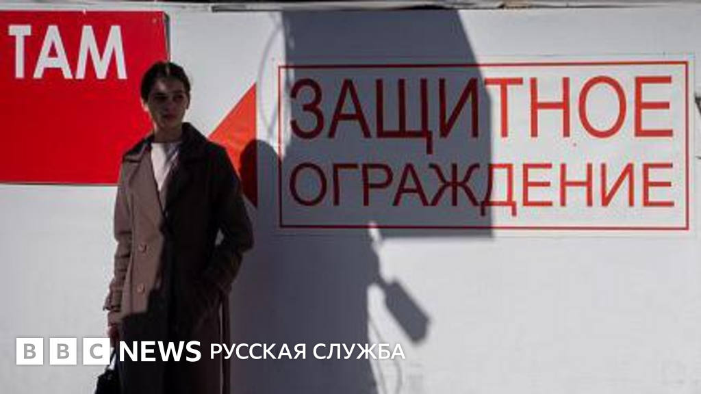 Женщина стоит у надписи на стене "Защитное ограждение" в Белгороде