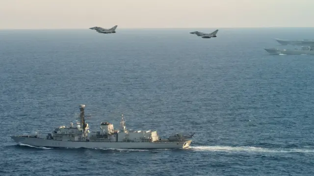 В ответ на действия российских военных Великобритания направила в этот район свой фрегат HMS St Albans, корабль поддержки, военные вертолеты и самолеты, которые круглосуточно следили за россиянами.
