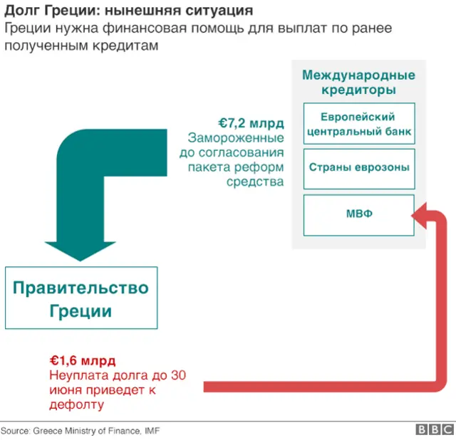 Мы наблюдаем именно такую ситуацию. Греция пытается добиться новых займов от своих кредиторов для того, чтобы избежать катастрофы - дефолта по своей задолженности Международному валютному фонду.
