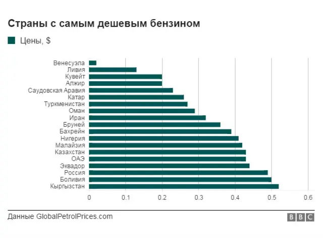 Например, заправить бак легкового Ford в столице стоит меньше доллара. "Самый дешевый [бензин] в мире, мы можем им руки мыть", – хвастается владелец спортивного автомобиля.