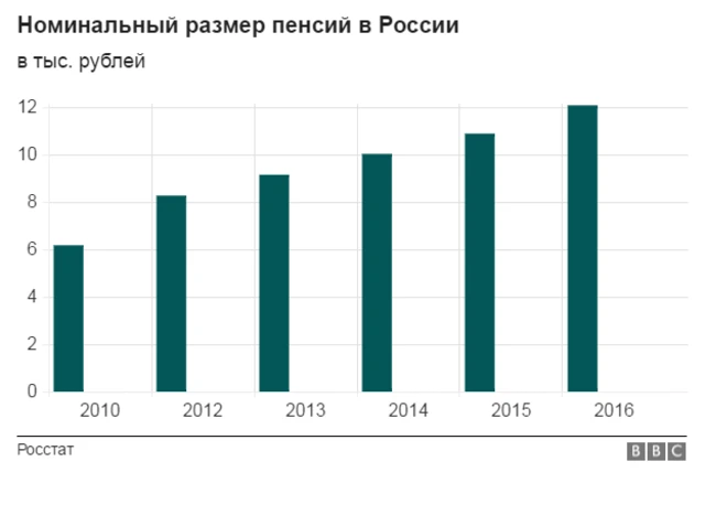 Для начала - о величине пенсии в стране. По данным Росстата, средняя величина назначенной пенсии в России за 2016 год составила 12 080,9 рубля (184 доллара).