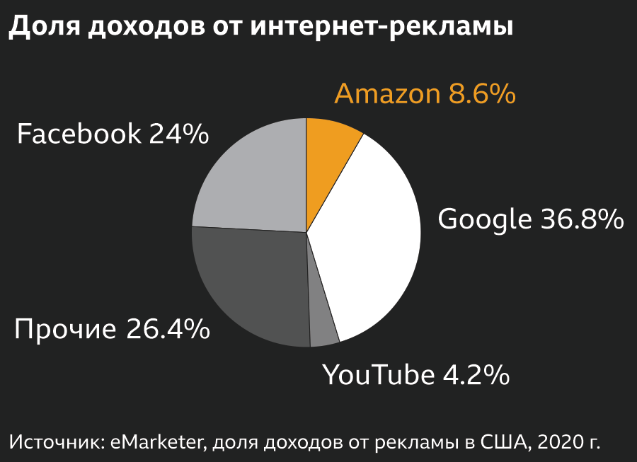 В последнем бухгалтерском отчете компании реклама - самый быстрорастущий сегмент. Amazon сегодня занимает третье место в США по прибылям в сфере цифровой рекламы после Google и Facebook.