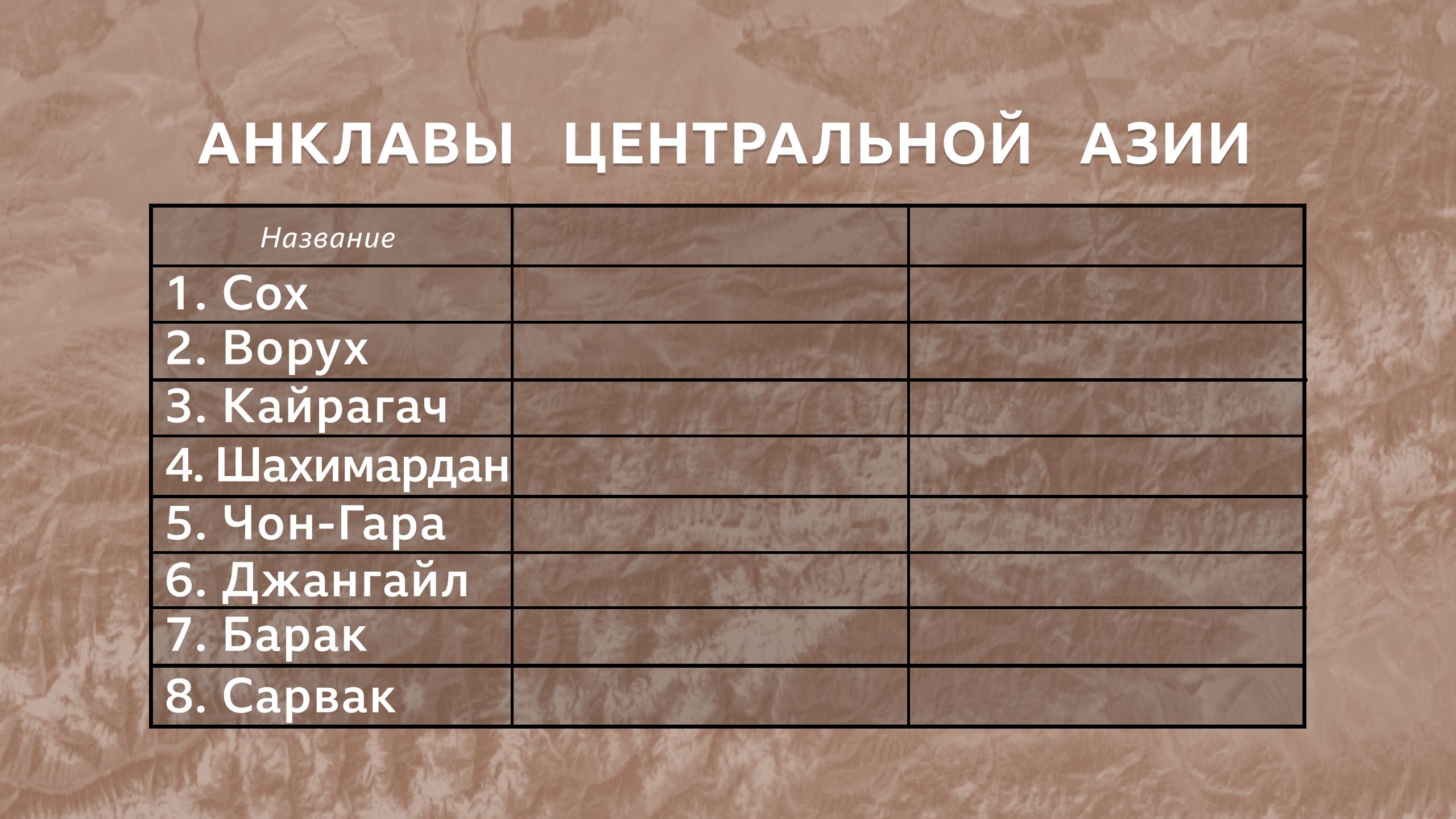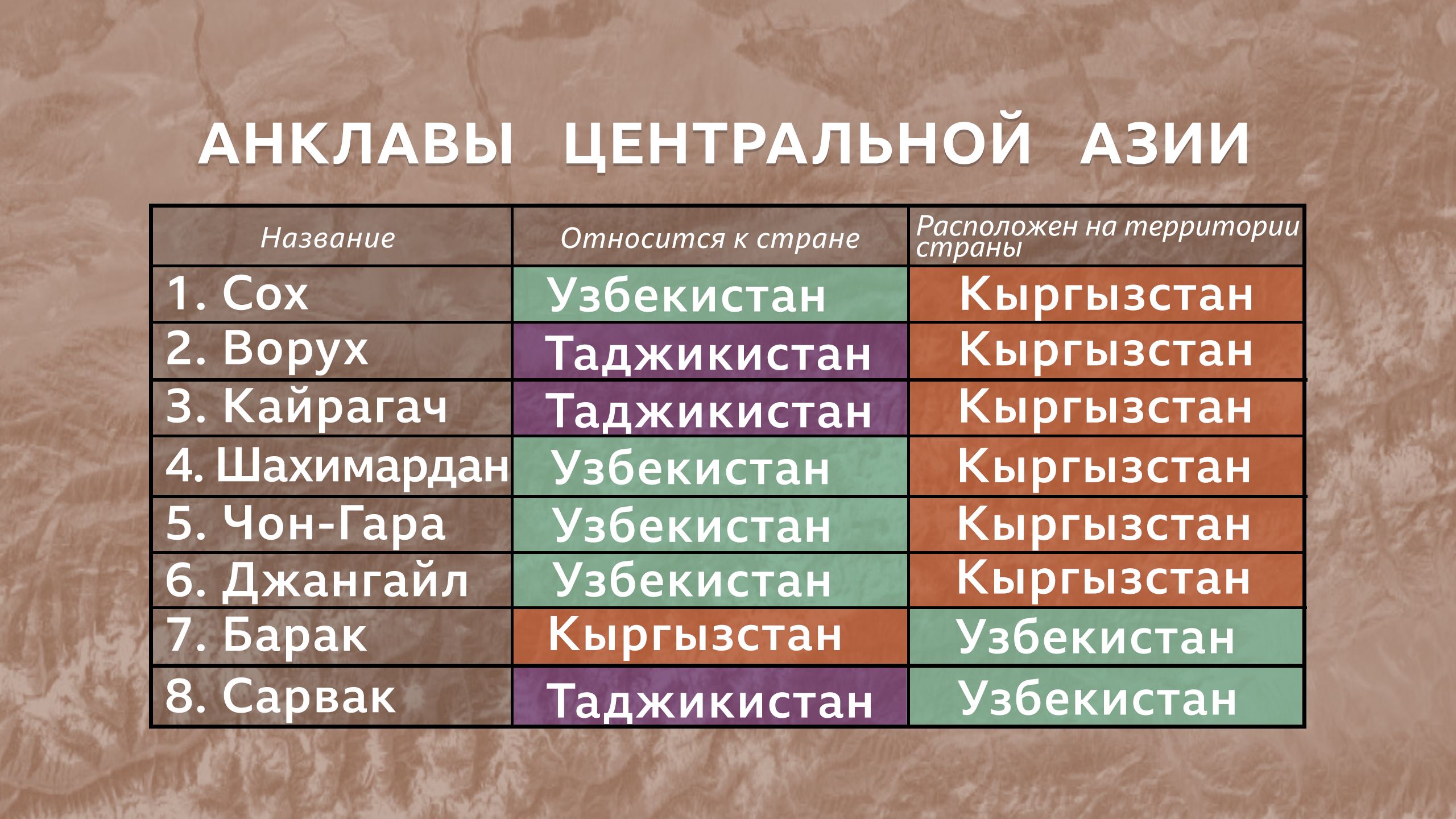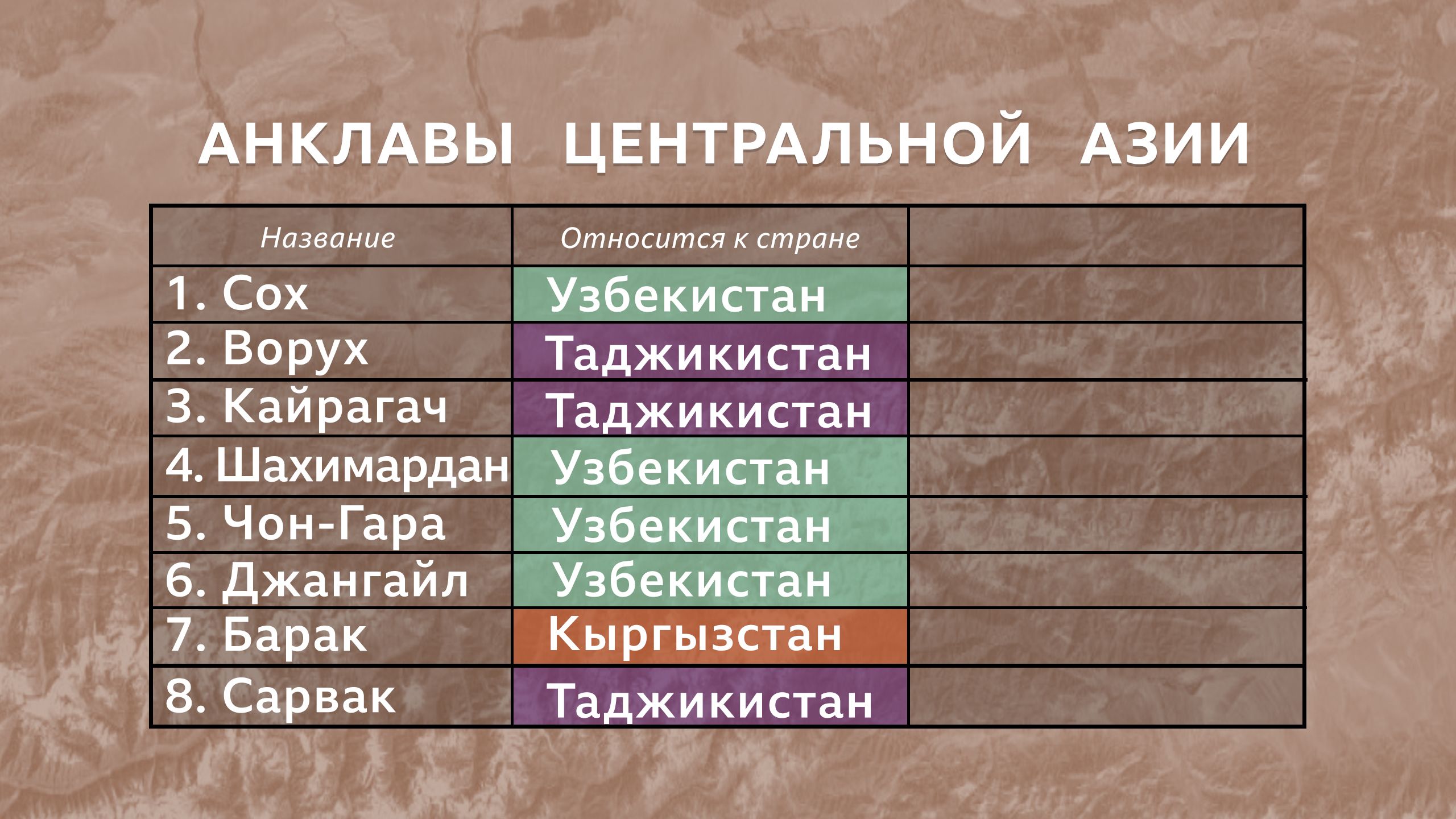Поделенные между Кыргызстаном, Таджикистаном и Узбекистаном горные хребты и равнины иногда сравнивают с лоскутным одеялом или шахматной доской.