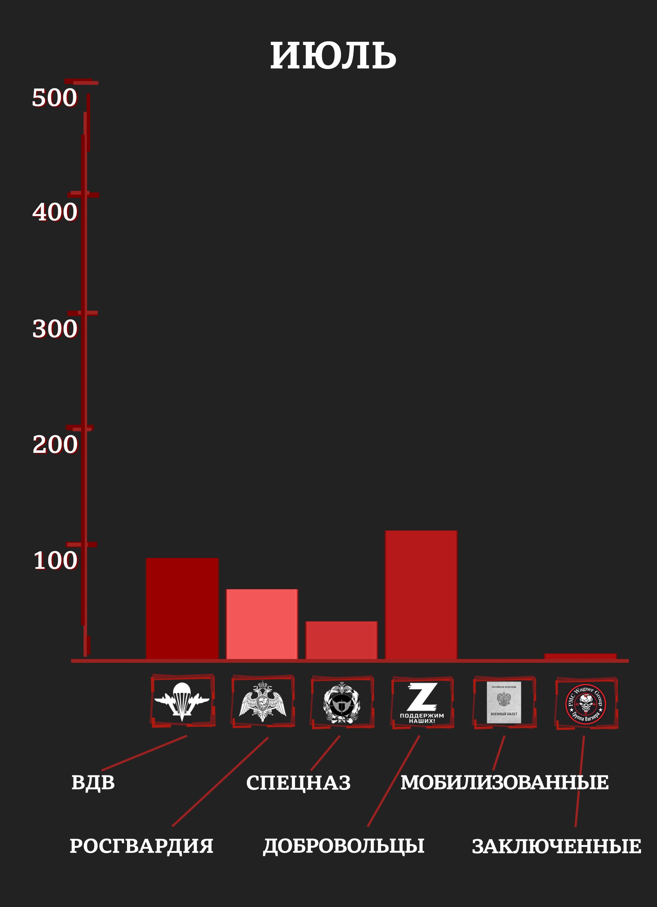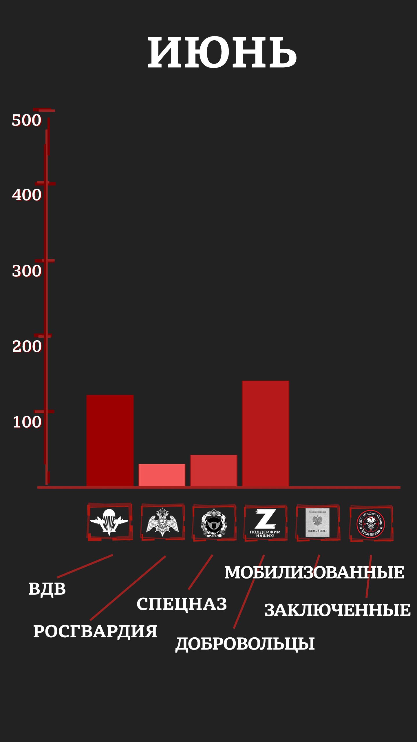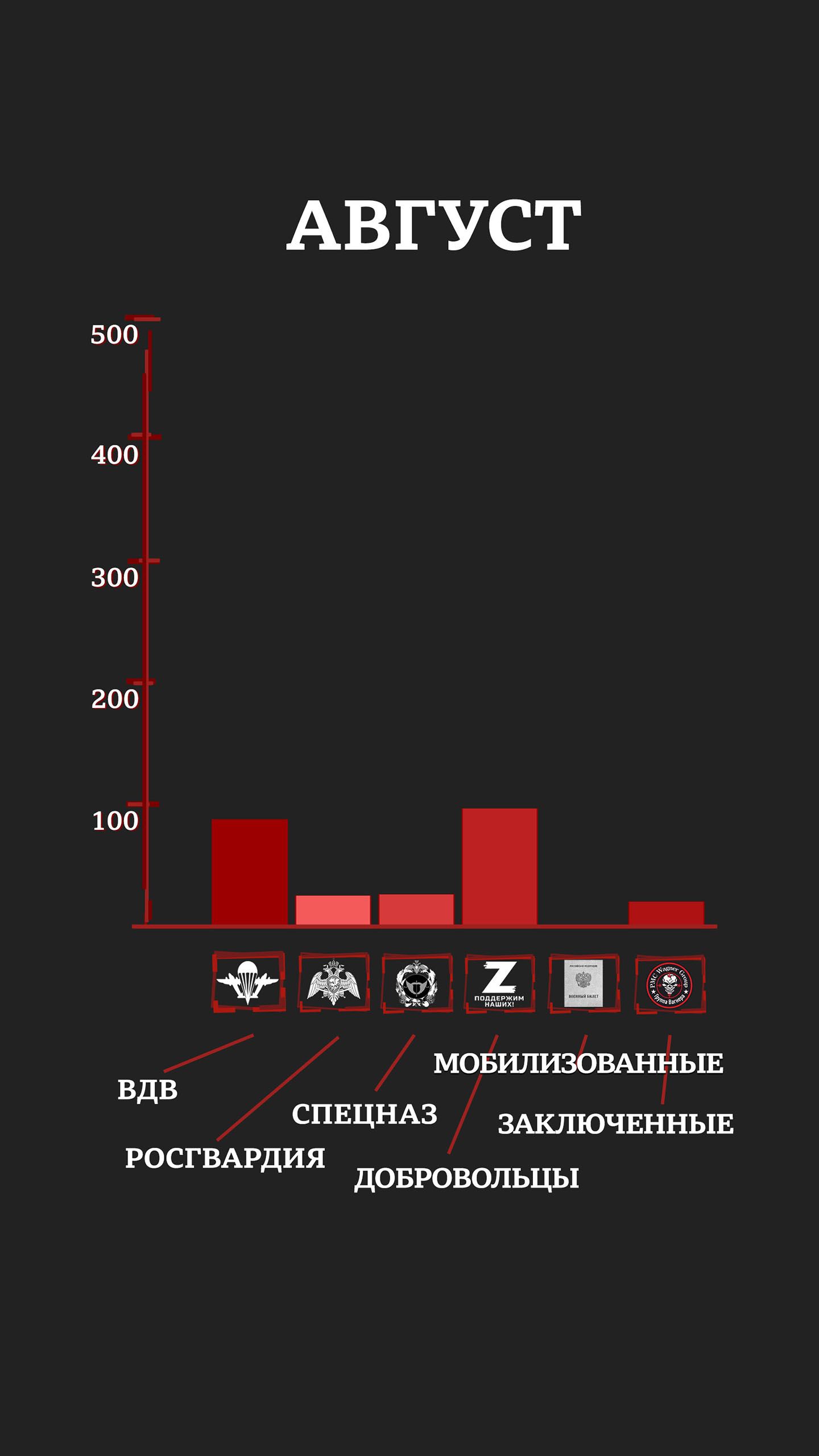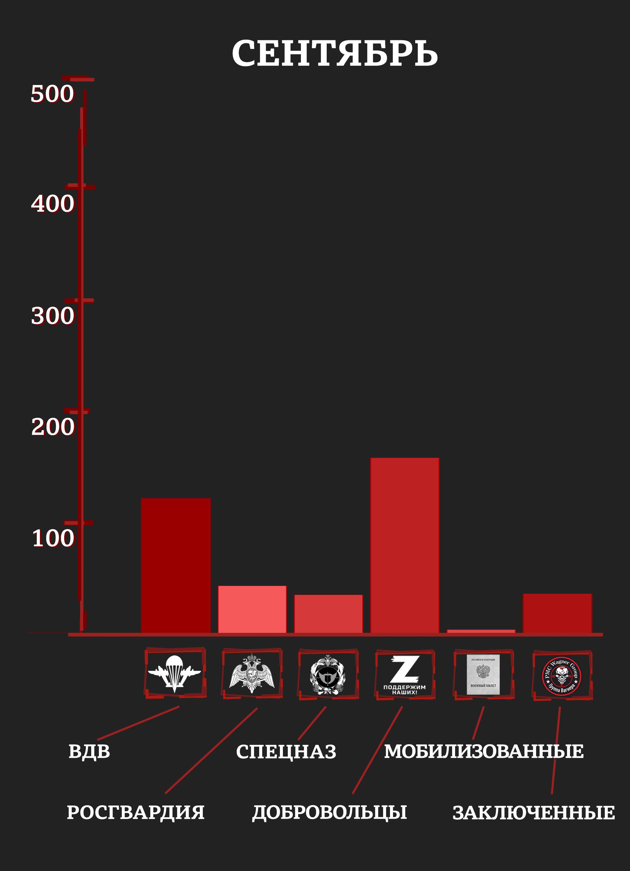 С учетом раненых и пропавших без вести уже к маю элитные отряды российской армии и Росгвардии имели в строю лишь четверть своего февральского состава (исходя из оценок специалистов и публиковавшейся численности отрядов). Средний возраст погибших в первые месяцы войны был 20-25 лет.