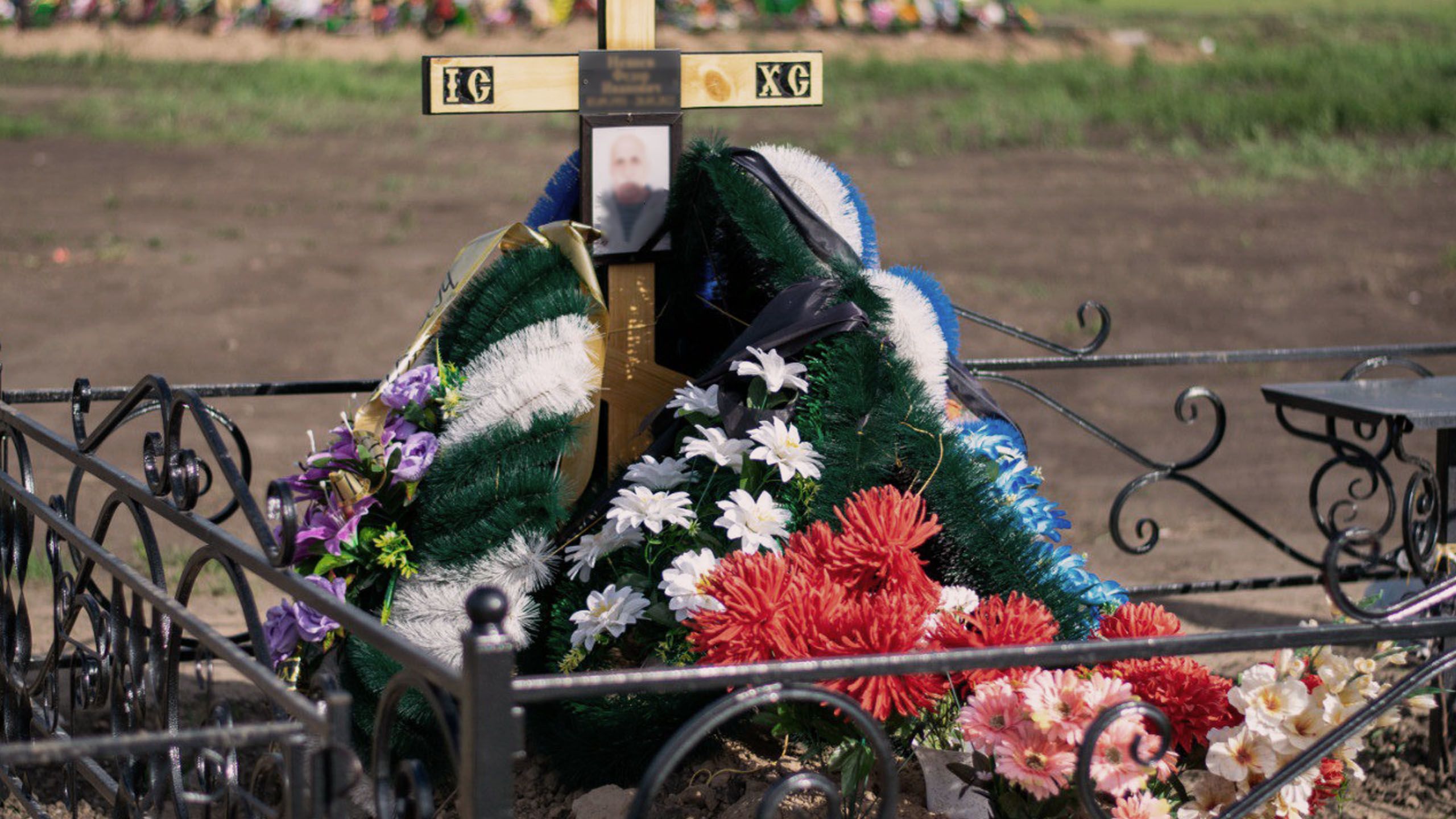 При этом они явно погибли в Украине: на это косвенно указывали и дата смерти, и фотография на памятнике, и венки от Минобороны.