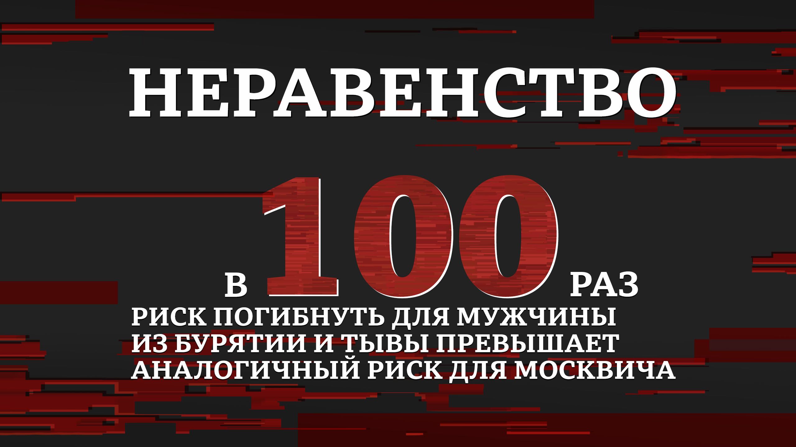 Например, риск погибнуть на войне в Украине для молодого мужчины из Бурятии и Тывы превышает аналогичный риск для молодого москвича примерно в 100 раз.