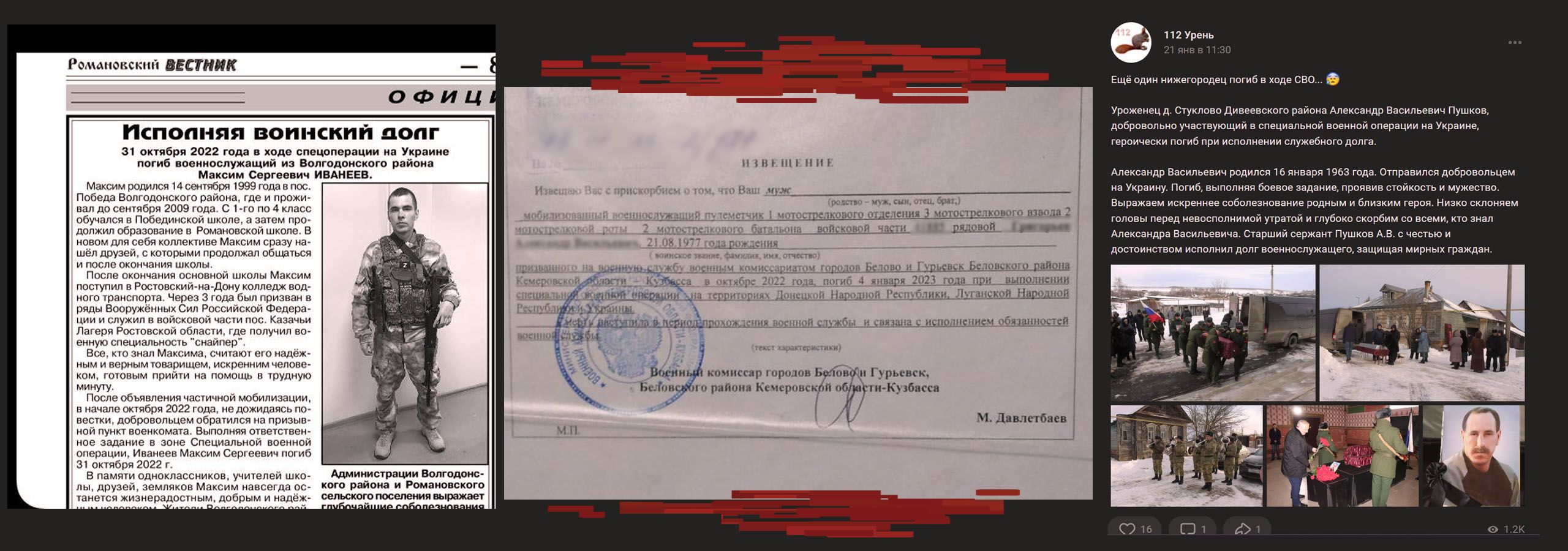 Третий источник - это публикации близких погибших. В соцсетях появляется много постов о похоронах военных, но мы ориентируемся только на посты близких родственников, чтобы избежать ошибок.