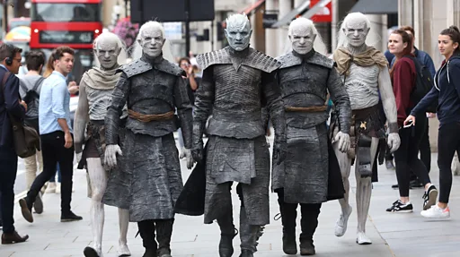 Накануне премьеры первой серии седьмого сезона всадники, одетые в костюмы героев сериала, приехали осмотреть достопримечательности британской столицы, а сотрудники лондонского метрополитена использовали искусственные языки, на которых говорят в "Игре" в общении с "ряжеными" косплеерами.