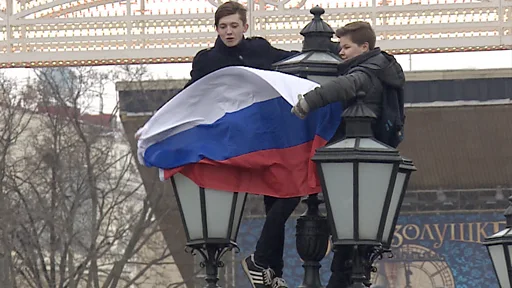 - Езжай, и телик свой выкинь! - отвечал ему парень с флагом России.