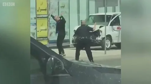 На видео с места инцидента подозреваемый Алек Минасян направляет предмет, напоминающий пистолет, на полицейского и кричит: "Убейте меня!"