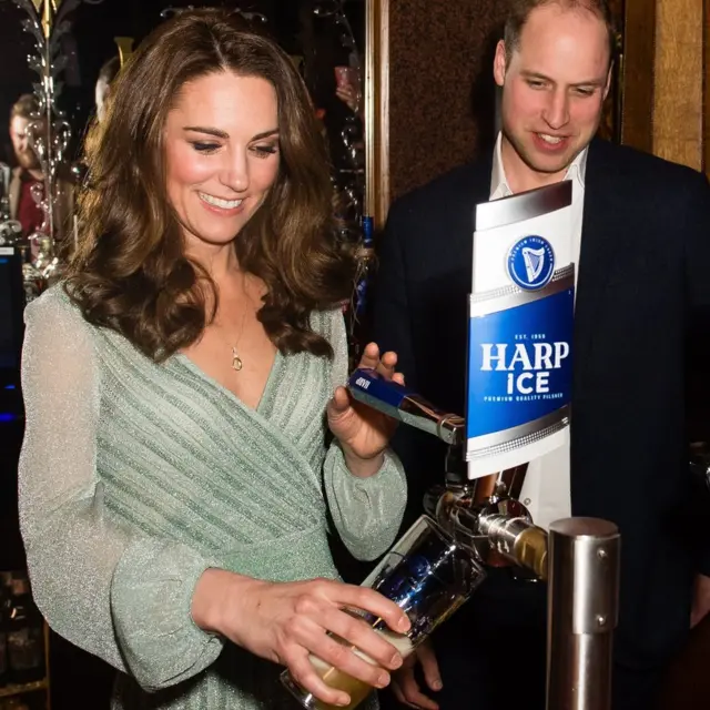 Первый день визита герцога и герцогини Кембриджских в Северную Ирландию завершился праздничным вечером в концертном зале Белфаста Empire Music Hall, где вместе с гостями они выпили по пинте пива.