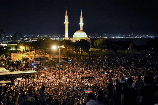 К полуночи толпа собралась у Аллеи Шахидов и у находящегося рядом здания Милли Меджлиса (парламента). У многих в руках были азербайджанские и турецкие флаги.