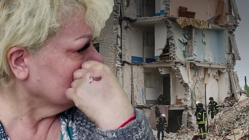 Еще одна ракета попала в девятиэтажку, практически полностью уничтожив одну из секций дома.
