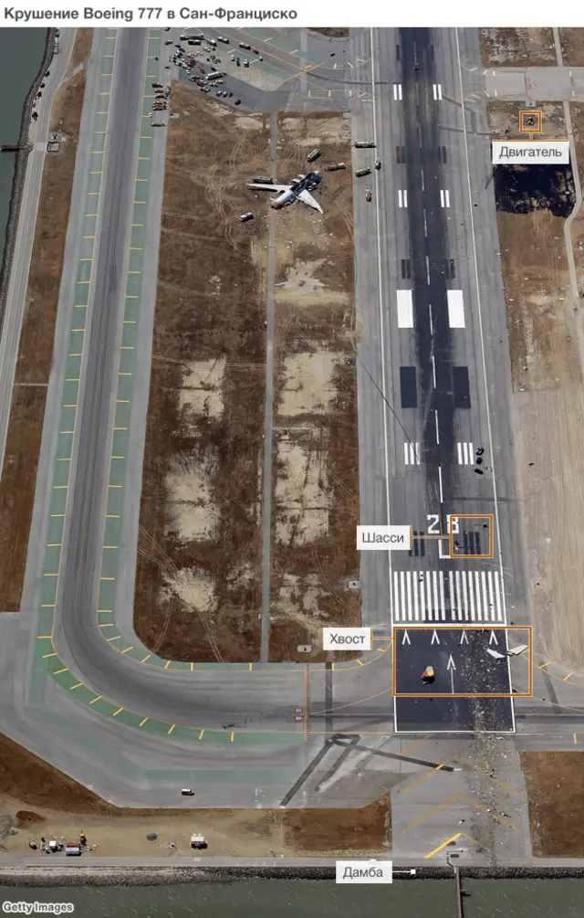 Один из пассажиров лайнера Дэвид Юн опубликовал фотографию с места аварии и сообщил в сети Twitter, что у самолета оторван хвост. Он добавил, что "кажется, почти все пассажиры в порядке. Со мной все ок. Невероятно".