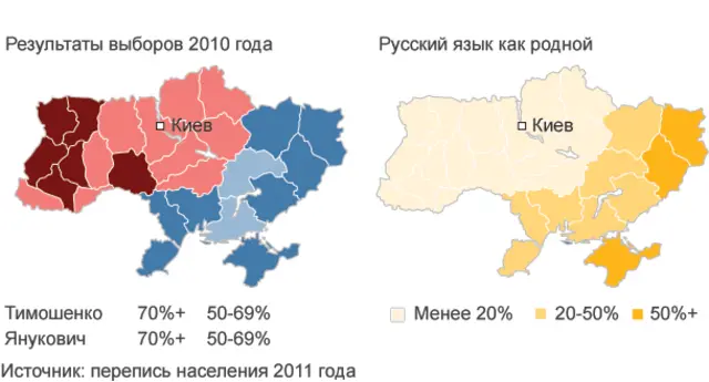 Последние события привели к углублению раскола в стране, который существовал в связи с культурными и языковыми барьерами между востоком и западом Украины.