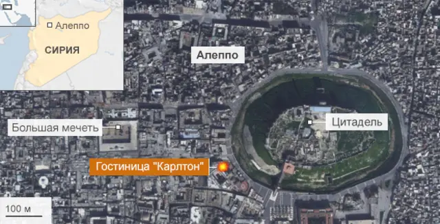 На севере Алеппо прогремел мощный взрыв, в результате которого была разрушена гостиница "Карлтон" и несколько зданий, находившихся поблизости.
