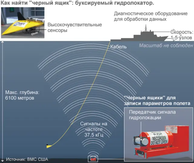 Четыре акустических сигнала, которые, по версии властей, могли исходить от "черных ящиков" самолета, были обнаружены специалистами поисковой операции с помощью буксируемого гидролокатора.