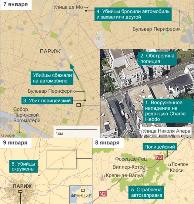 Французская полиция убила исламистов, осуществивших нападение на редакцию журнала Charlie Hebdo. Братья Саид и Шериф Куаши погибли в перестрелке, которая последовала за многочасовой осадой типографии в городе Даммартен-ан-Гаэль к северу от Парижа.