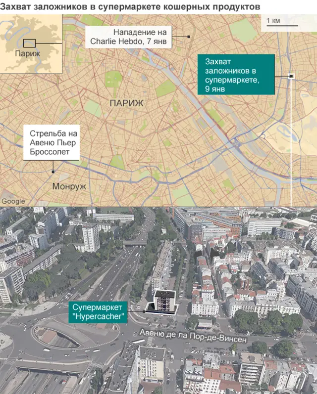 Русская служба Би-би-си <link type="page"><caption> вела онлайн-трансляцию операций</caption><url href="http://www.bbc.co.uk/russian/international/2015/01/150109_live_france_manhunt" platform="highweb"/></link> по поимке братьев Куаши и освобождению заложников в Порт-де-Венсен.