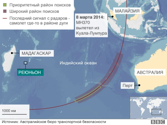 Поисковые усилия группы, возглавляемой Австралией, сконцентрированы на широком пространстве южной части Индийского океана примерно в 4000 км к востоку от Реюньона.