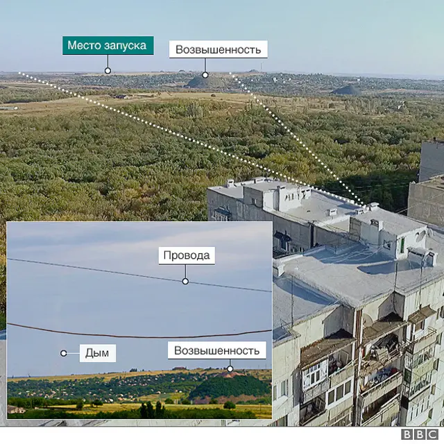 Яна Ерлашова из RT, например, заявляет, что положение проводов на снимке доказывает, что фото не могло быть сделано с балкона этого фотографа и что с того балкона на девятом этаже вообще не видно предполагаемое место запуска.