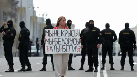 "Сегодняшние протесты выглядят иначе, чем в предыдущие воскресенья. Как видите, гораздо больше полиции, более усиленная охрана. Полиция решительно настроена остановить эти протесты", - передает корреспондент Стив Розенберг с места событий.