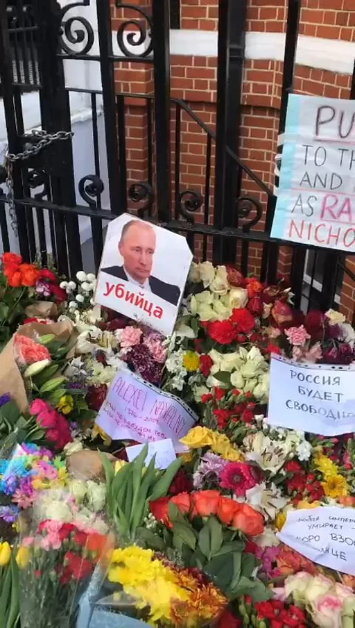 «Посольство было закрыто. Вокруг не было большой толпы — я думаю, цветы принесли прошлым вечером. Но постоянно подходили люди, оставляли цветы, останавливались, чтобы почитать надписи или просто молча постоять у цветов, помянуть.