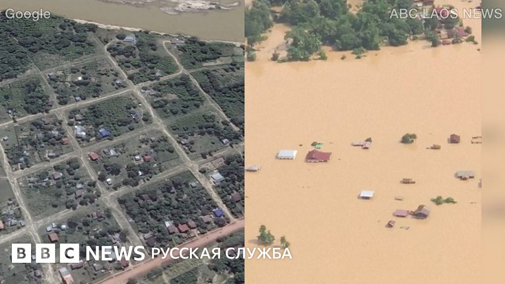 Подпись к видео, Прорыв дамбы в Лаосе: до и после