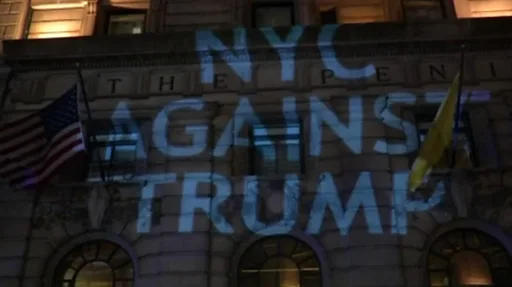 В Нью-Йорке участники акции протеста прошли маршем к Трамп-тауэр, где сейчас, как предполагается, находится Дональд Трамп. У здания стоят несколько грузовиков с песком, закрывая вход.