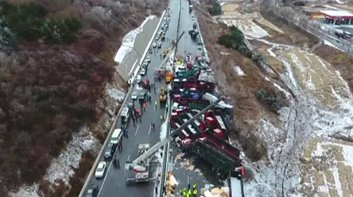 Инцидент произошел во время дождя со снегом в северной провинции Шаньси на магистрали, соединяющей Пекин с городом Куньмин.