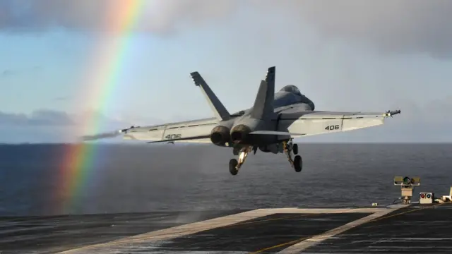 Истребитель-бомбардировщик McDonnell Douglas F/A-18 "Хорнет" широко применяется ВМС США.