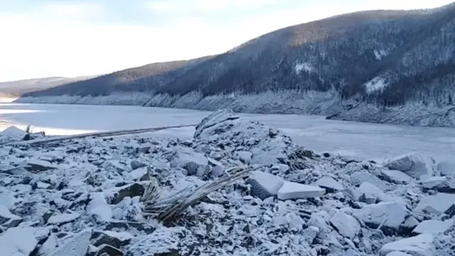 На видеозаписях с места происшествия видны разрушенная заснеженная сопка, замерзшая река, засыпанная грунтом и камнями, и десятки поваленных деревьев.